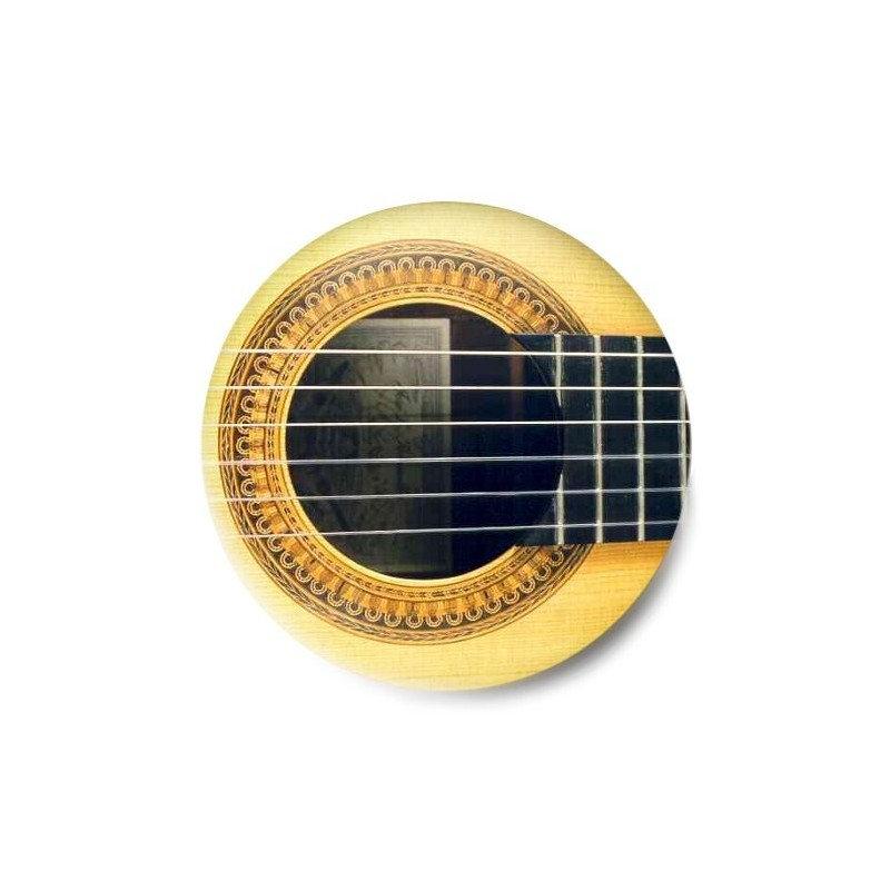 Chapa de 25mm con aguja con el diseño Ojo Guitarra. También hay otros tamaños y acabados disponibles (imán, abrebotellas, espejo, llavero, etc).