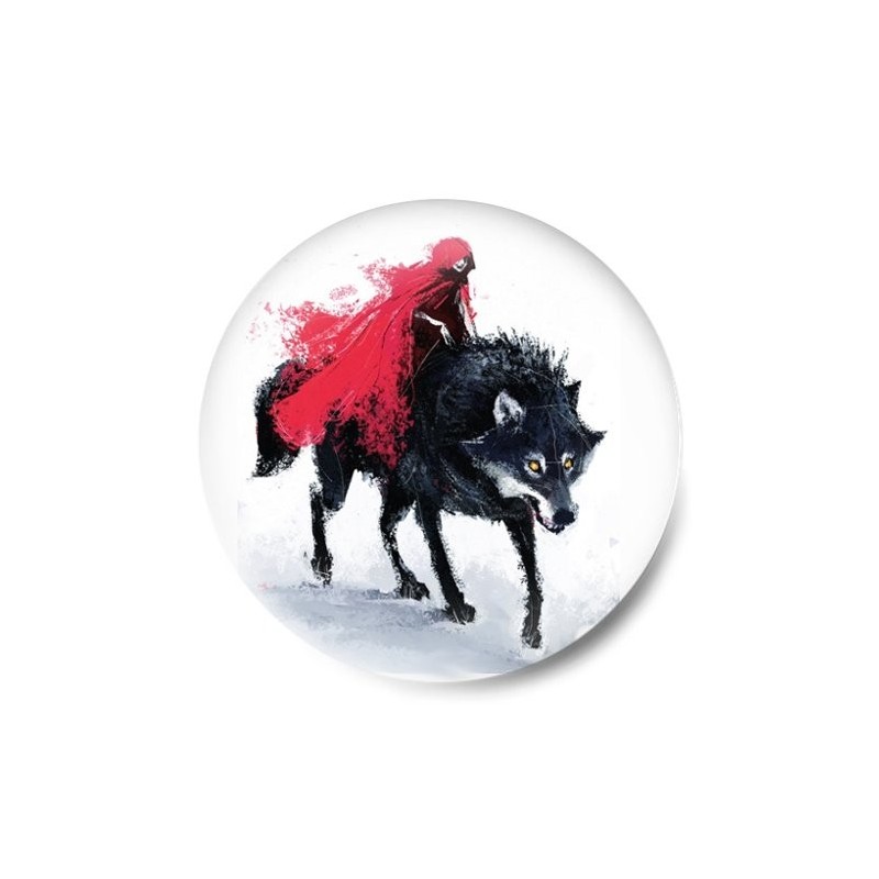 Chapa de 25mm con aguja con el diseño Gotic caperucita . También hay otros tamaños y acabados disponibles (imán, abrebotellas, espejo, llavero, etc).